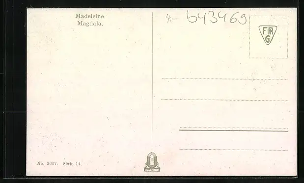 Personenbezogene Daten auf der Rückseite der Karte wurden durch blauen Textmarker unkenntlich gemacht. Die blauen Stellen sind auf die Vorderseite durchgeweicht und wirken sich negativ auf das Postkartenfoto aus