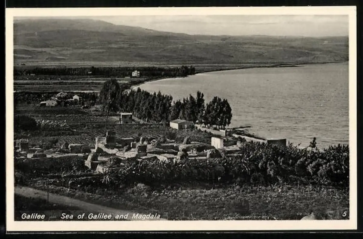 AK Magdala, Sea of Galilee und Ortsansicht von Magdala