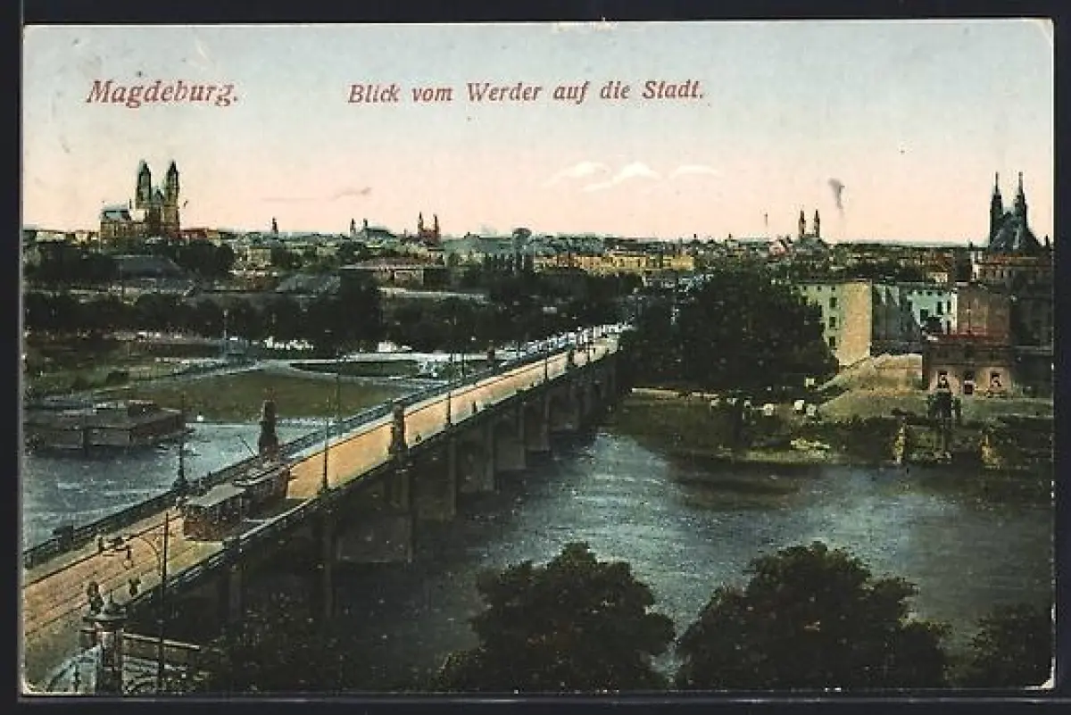 AK Magdeburg, Blick vom Werder auf die Stadt