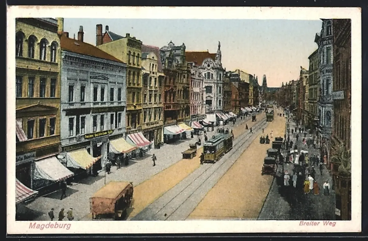 AK Magdeburg, Breiter Weg mit Strassenbahn