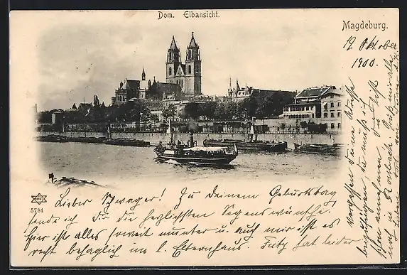 AK Magdeburg, Dampfer auf der Elbe, Dom