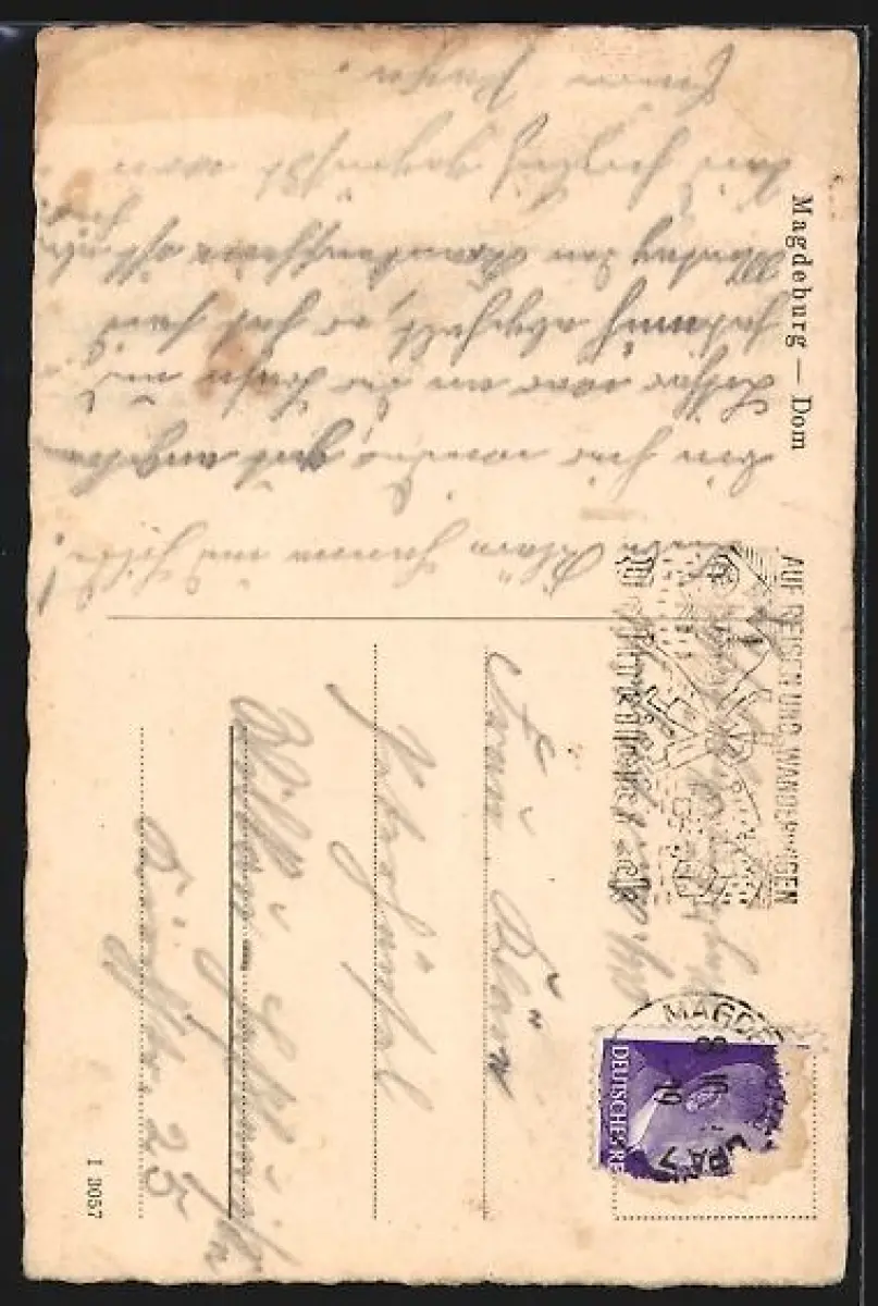 alte Ansichtskarte, gelaufen, Eckknicke oben und unten rechts
