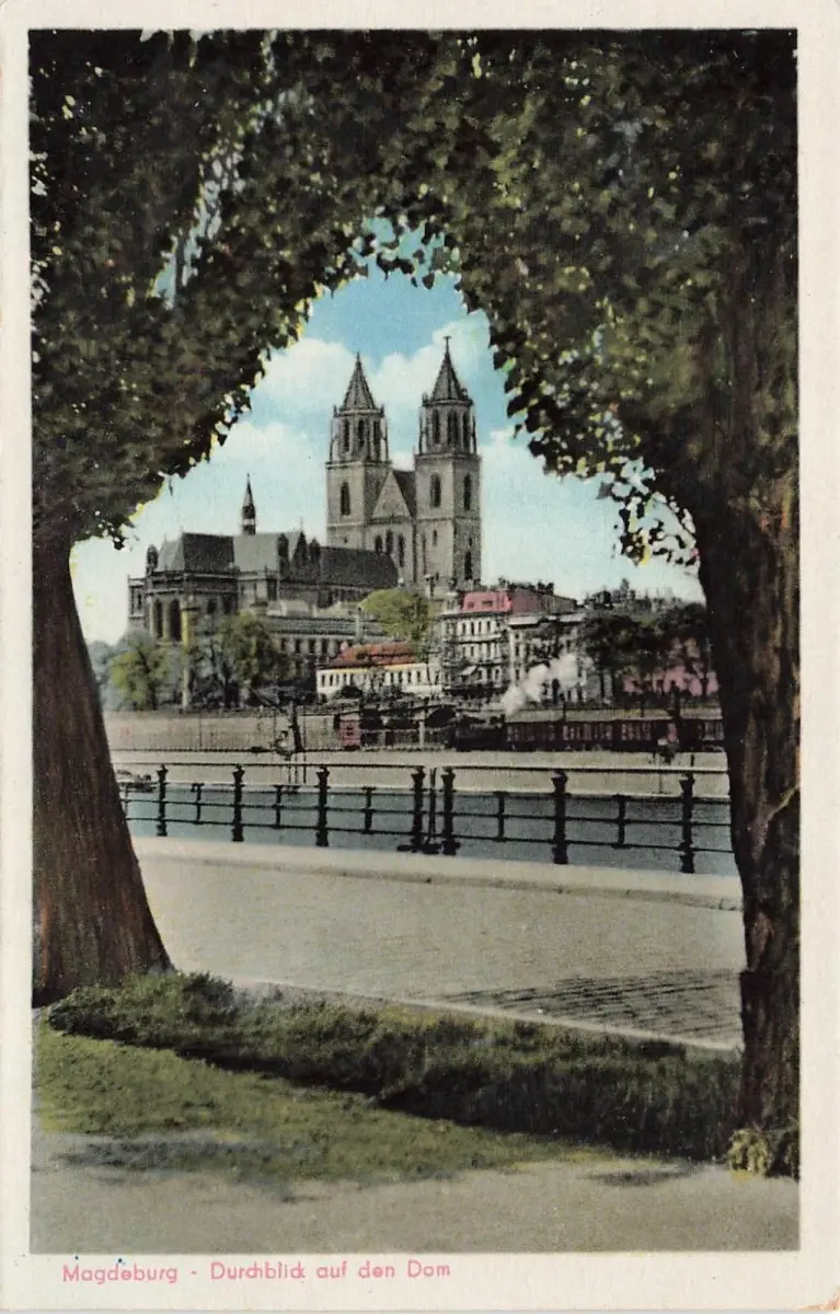 AK Magdeburg Dom Elbe Lok Sachsen-Anhalt ungelaufen Postkarte