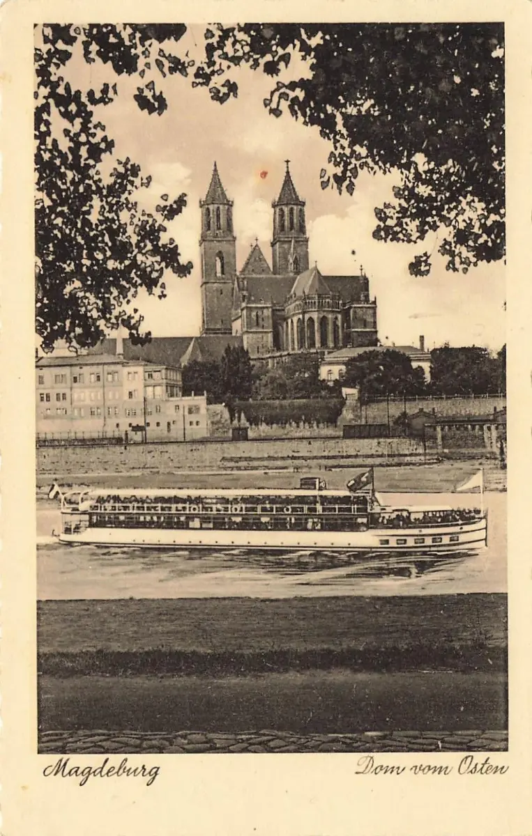 AK Magdeburg Dom von Osten Passagierschiff Sachsen-Anhalt 1939 Postkarte