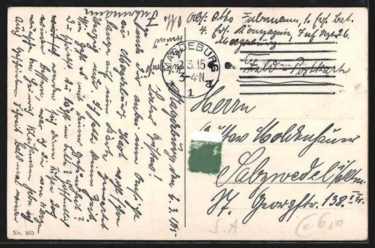 gelaufen 1915, rückseitig Klebe- und Papierreste, guter Zustand