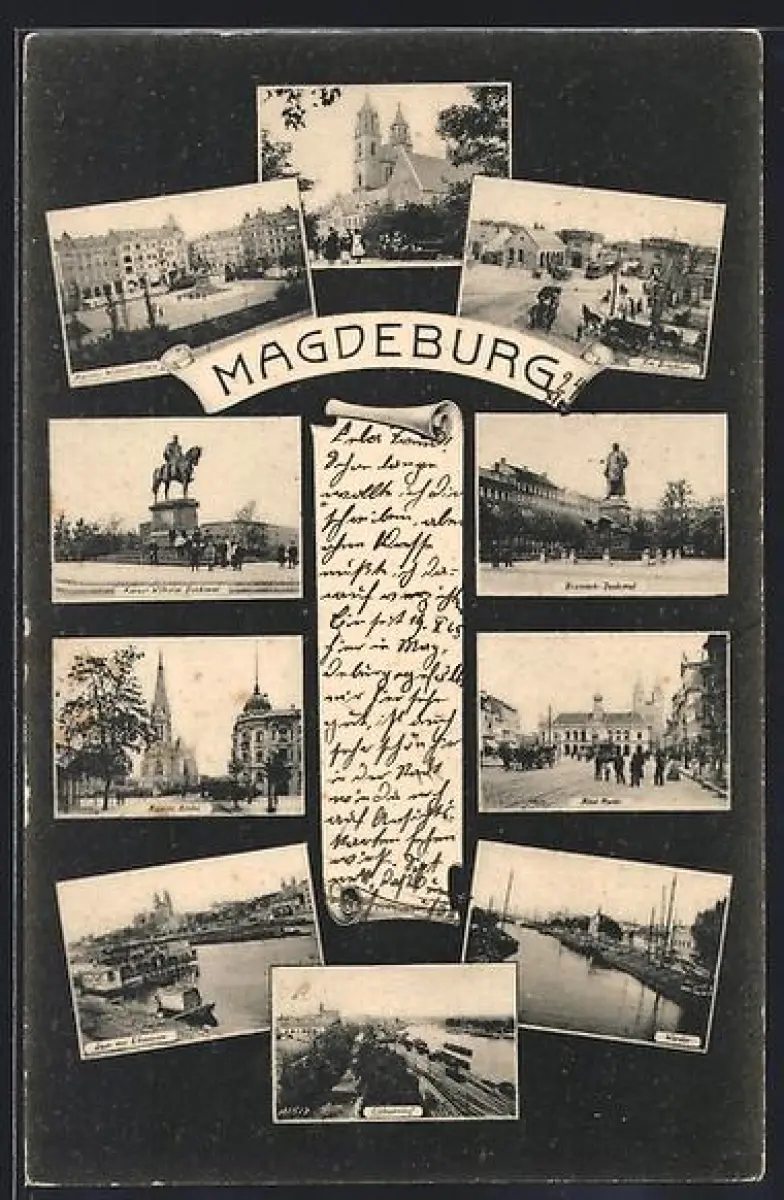 AK Magdeburg, Kaiser Wilhelm-Platz, Bismarck-Denkmal, Alter Markt, Werder, Elbbahnhof