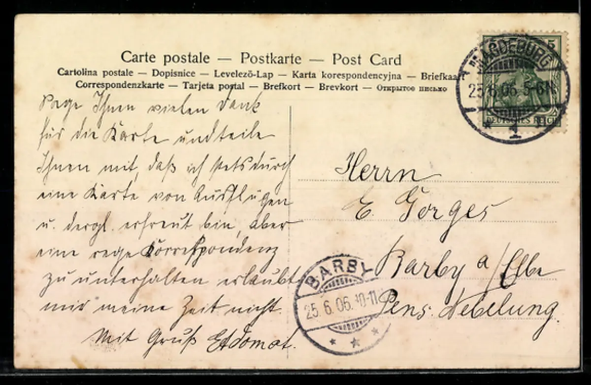 alte Ansichtskarte, gelaufen 1906, guter Zustand