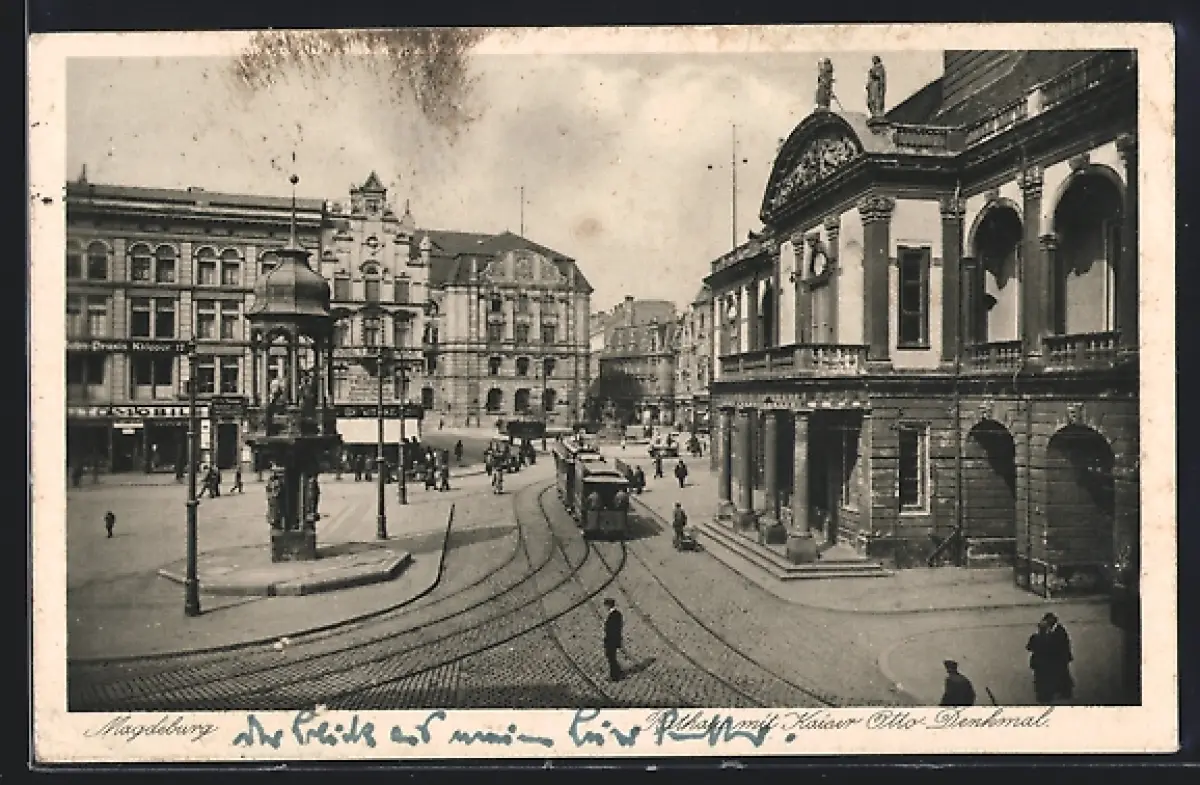 AK Magdeburg, Rathaus mit Kaiser Otto-Denkmal und Strassenbahn