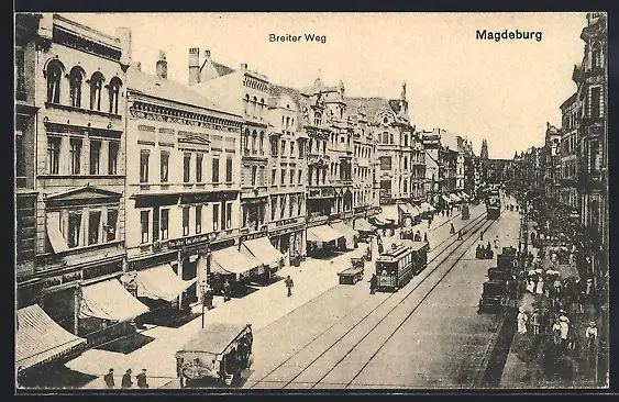 AK Magdeburg, Strassenbahn in Strasse Breiter Weg
