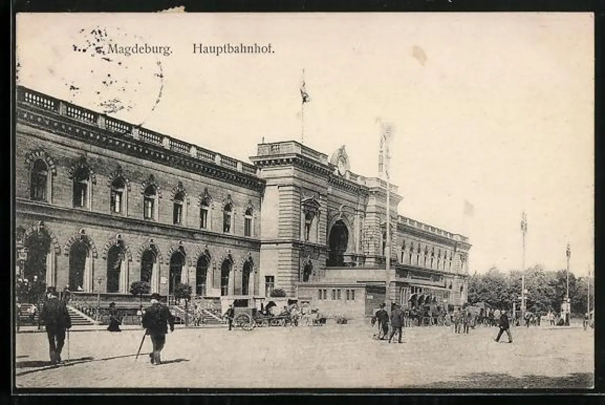 AK Magdeburg, Strassenleben am Hauptbahnhof