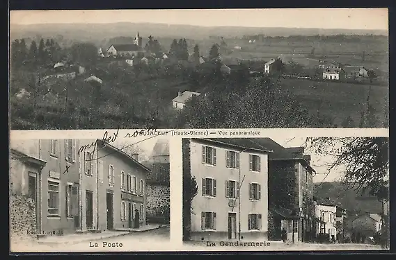 AK Magnac-Laval, Vue panoramique, La Poste et La Gendarmerie