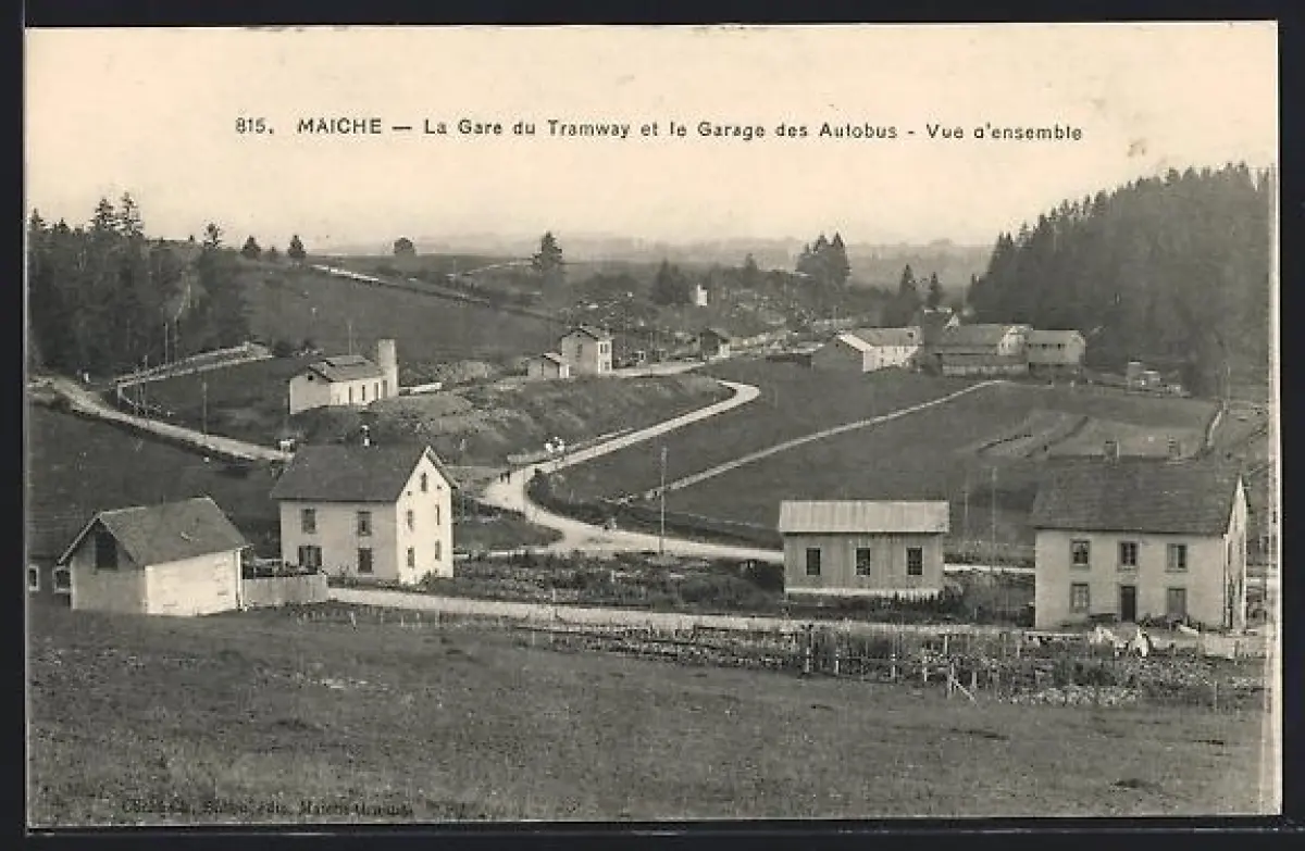 AK Maîche, La Gare du Tramway et le Garage des Autobus, Vue d`ensemble