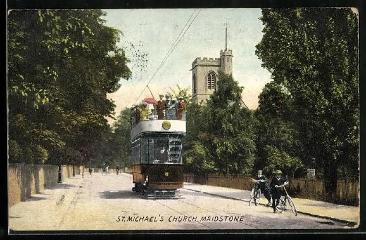 AK Maidstone, St. Michael`s Church, Strassenbahn