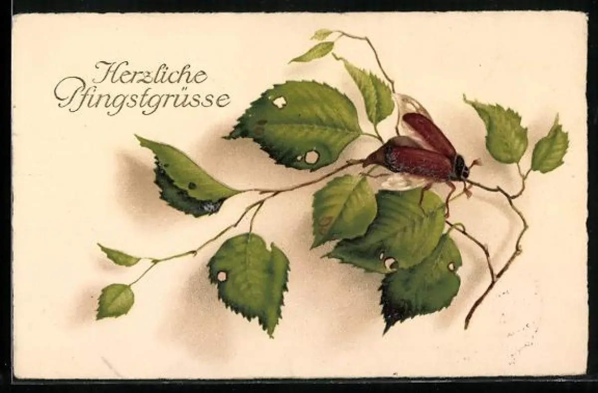 AK Maikäfer auf einem Zweig, Pfingstgruss