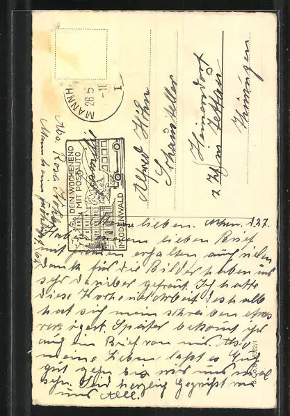 alte Ansichtskarte, gelaufen, Briefmarke entfernt, guter Zustand