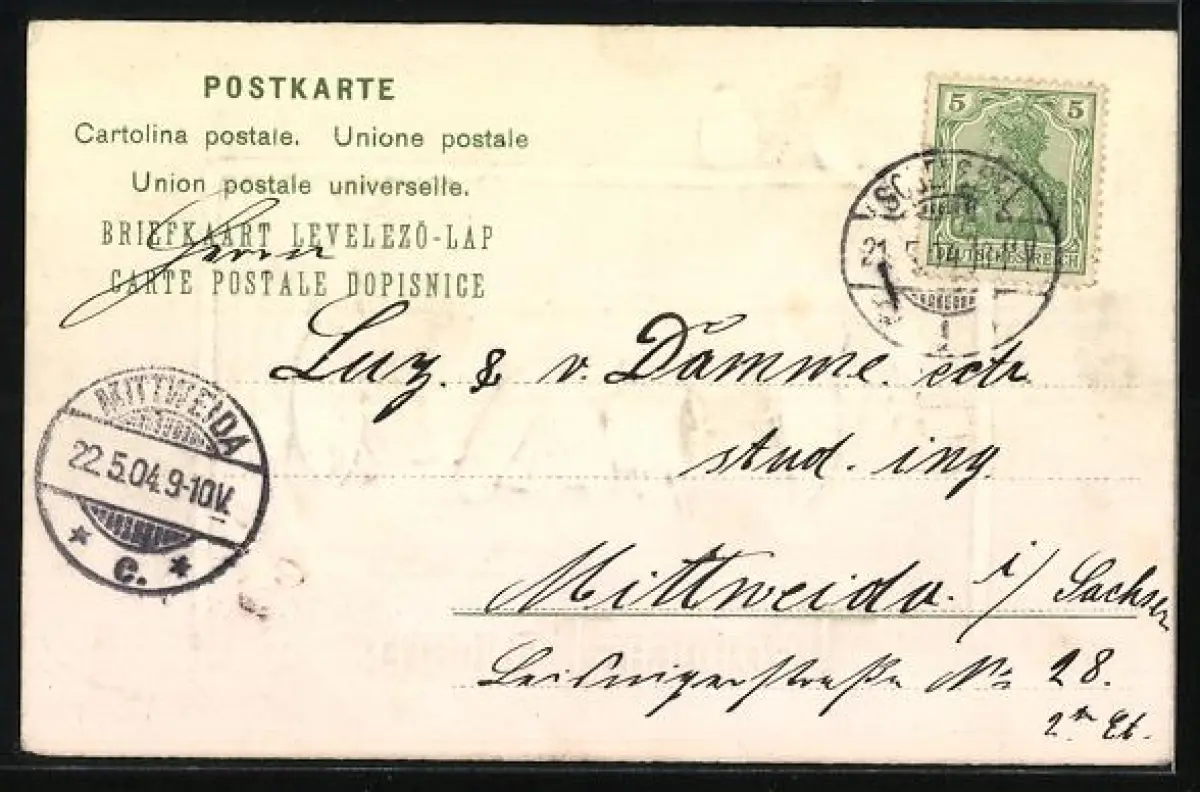 alte Ansichtskarte, gelaufen 1904, Stempelspur, guter Zustand