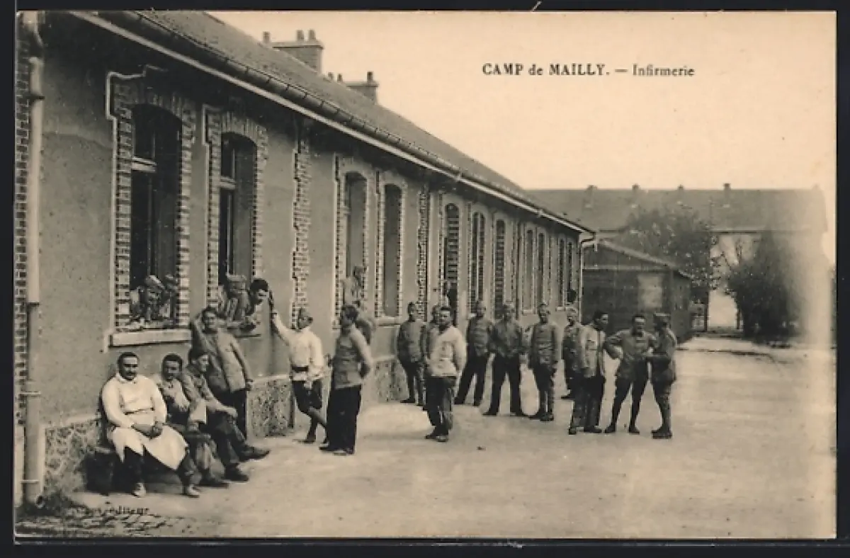 AK Mailly, Infirmerie du camp avec soldats devant le bâtiment