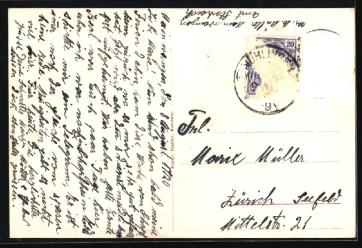 gelaufen 1920, Briefmarke entfernt, guter Zustand