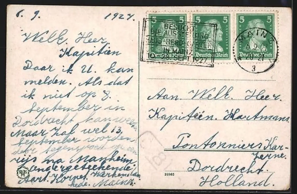 gelaufen 1927, Eckknicke oben links und unten rechts, guter Zustand