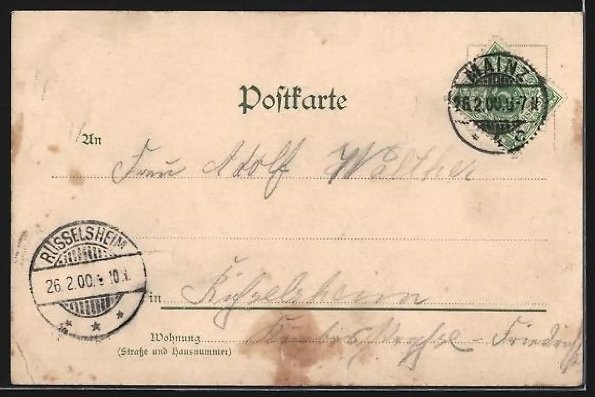 alte Ansichtskarte, gelaufen 1900, Eckknick unten rechts, guter Zustand