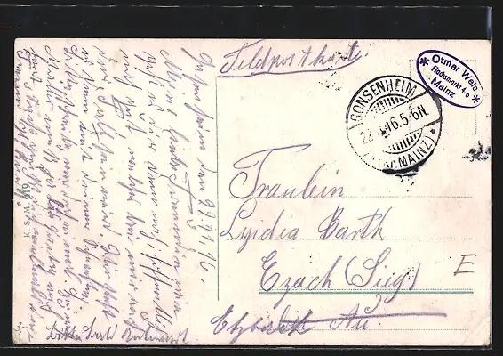 gelaufen 1916, Eckknick unten links, guter Zustand