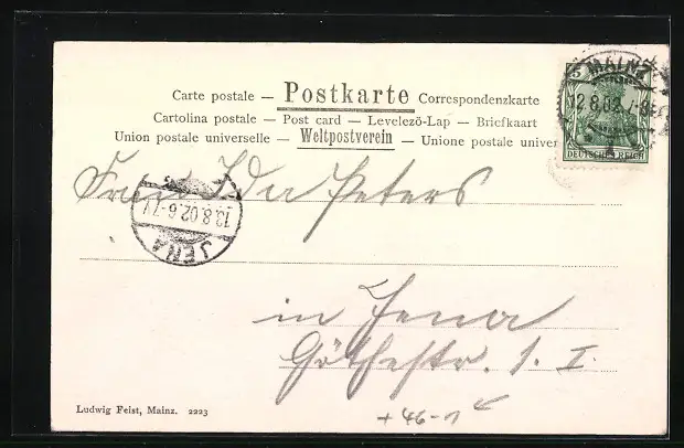alte Ansichtskarte, gelaufen 1902, guter Zustand