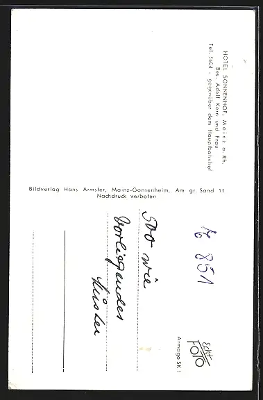 AK Mainz a. Rhein, Hotel Sonnenhof