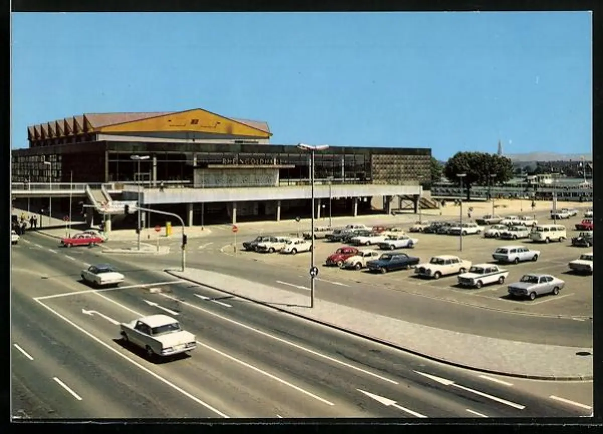 AK Mainz am Rhein, Rheingoldhalle mit Parkplatz