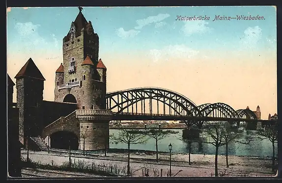 AK Mainz, an der Kaiserbrücke