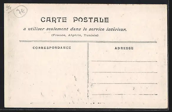 Personenbezogene Daten auf der Rückseite der Karte wurden durch blauen Textmarker unkenntlich gemacht. Die blauen Stellen sind auf die Vorderseite durchgeweicht und wirken sich negativ auf das Postkartenfoto aus