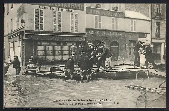 AK Maisons-Alfort, Distribution de pain lors de la crue de la Seine 1910