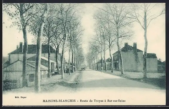 AK Maisons-Blanches, Route de Troyes à Bar-sur-Seine bordée d`arbres