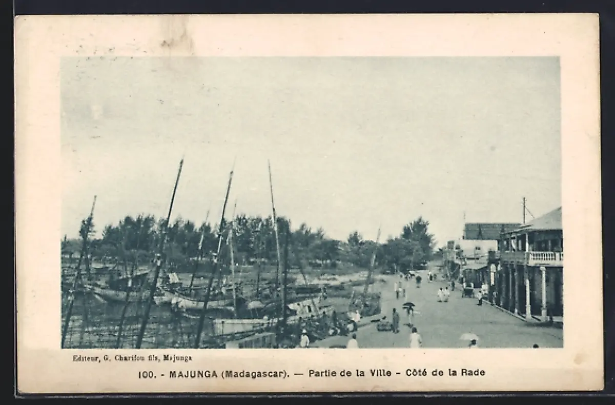 AK Majunga, Partie de la Ville, Cote de la Rade mit Segelbooten