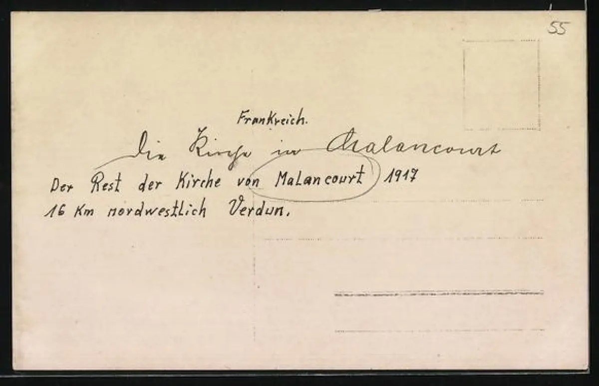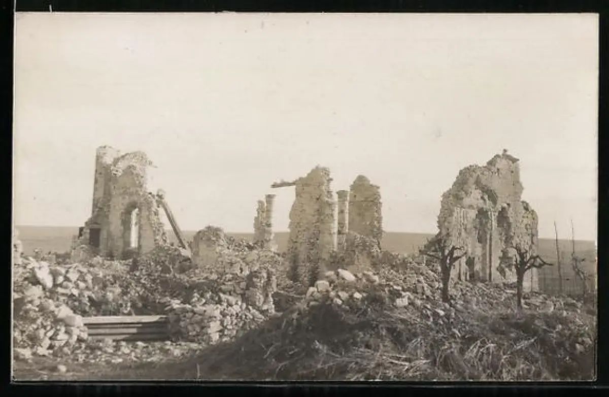 AK Malancourt, Restes de l`église après la guerre, 1917