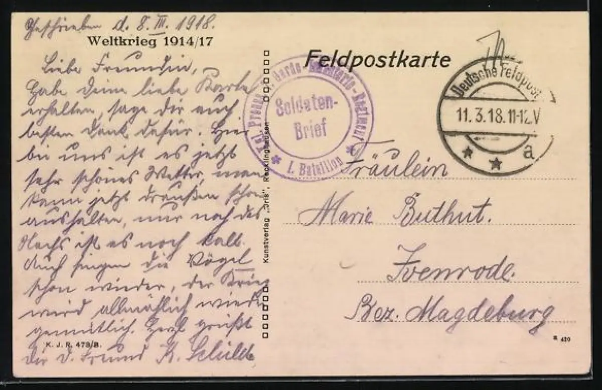 gelaufen 1918, guter Zustand