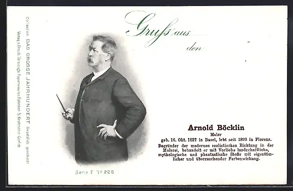 AK Maler Arnold Böcklin mit einem feinen Pinsel in der Hand