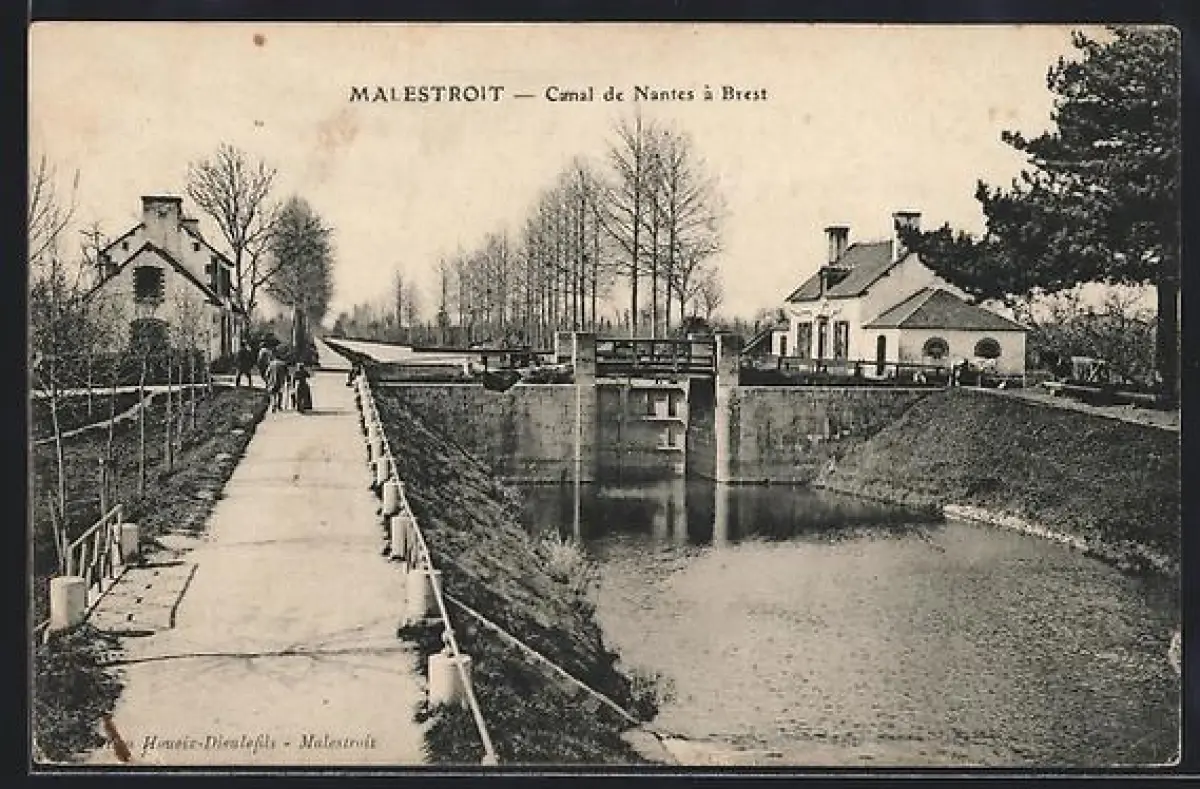 AK Malestroit, Canal de Nantes à Brest avec écluses et maisons environnantes