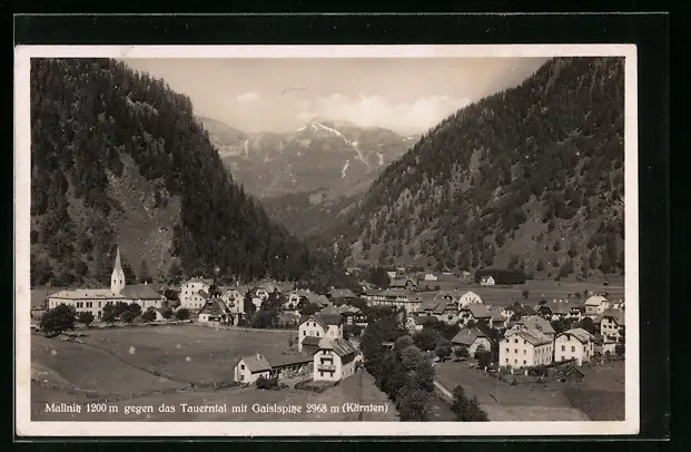 AK Mallnitz, Ortsansicht gegen das Tauerntal mit Gaislspitze