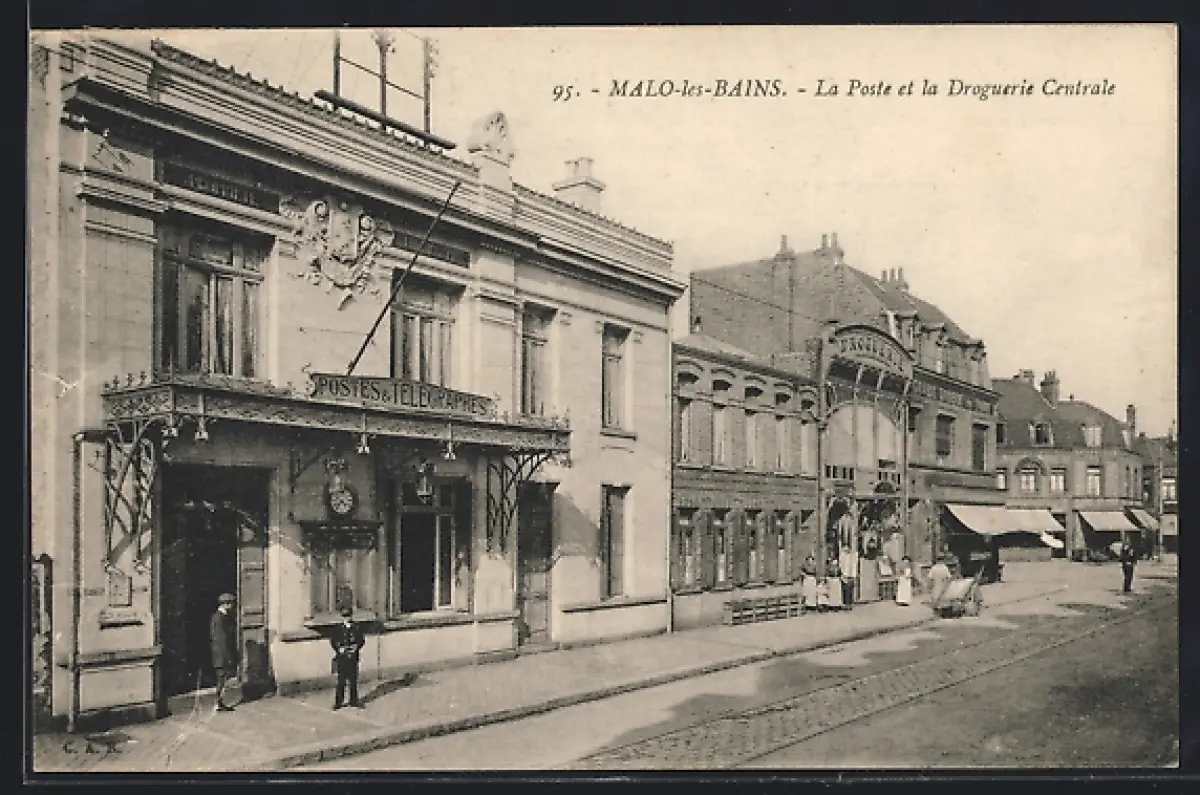 AK Malo-les-Bains, La Poste et la Droguerie Centrale