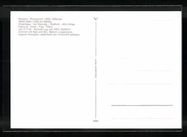 AK Mals, Pension-Restaurant Iris Albergo in zwei Ansichten mit Ortsansicht