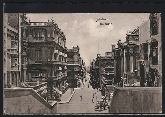 AK Malta, Str. Reale, Blick auf prächtige Häuserfassaden an Strasse