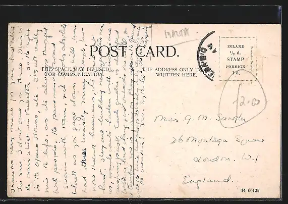 alte Ansichtskarte, gelaufen, Briefmarke entfernt, guter Zustand
