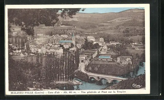 AK Malzieu-Ville, Cure d`air - Vue gènèrale et Pont sur la Truyère