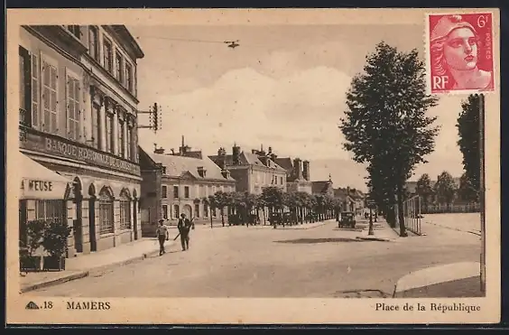 AK Mamers, Place de la République avec banque et passants