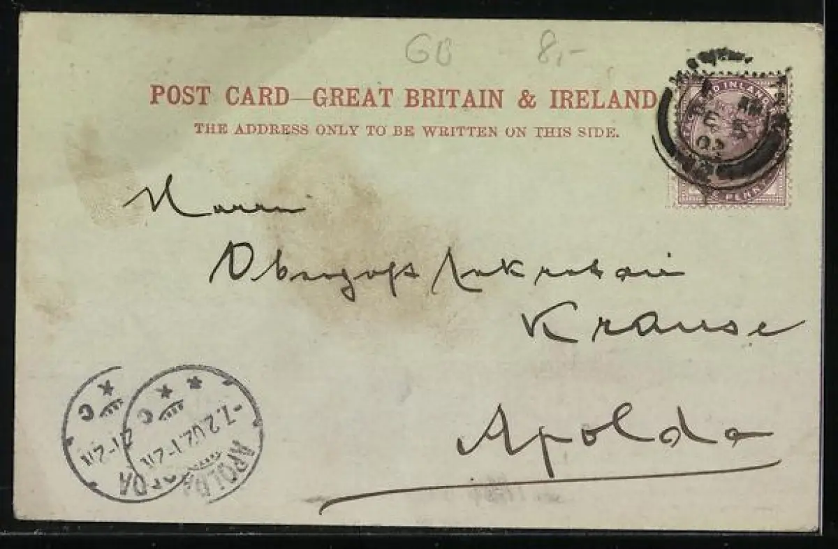 alte Ansichtskarte, gelaufen 1902, Eckknicke li., Stempelspur, guter Zustand