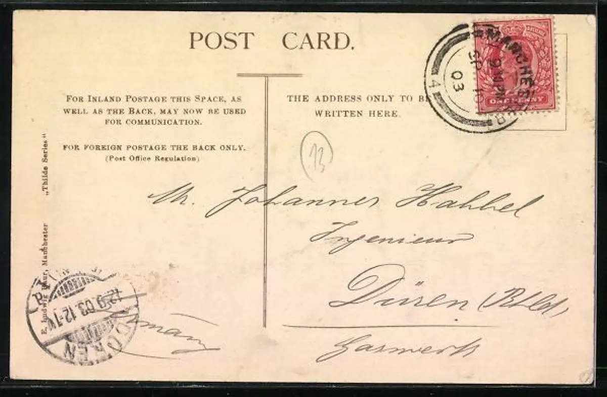 alte Ansichtskarte, gelaufen 1903, Stempelspur, guter Zustand