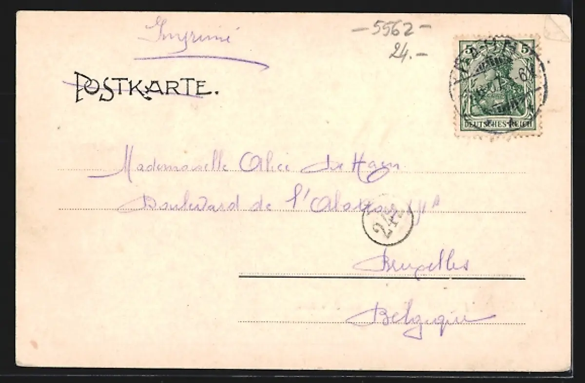 alte Ansichtskarte, gelaufen 1907, Eckknick oben li., guter Zustand