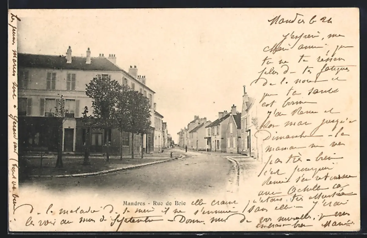 AK Mandres, Rue de Brie, Strassenpartie