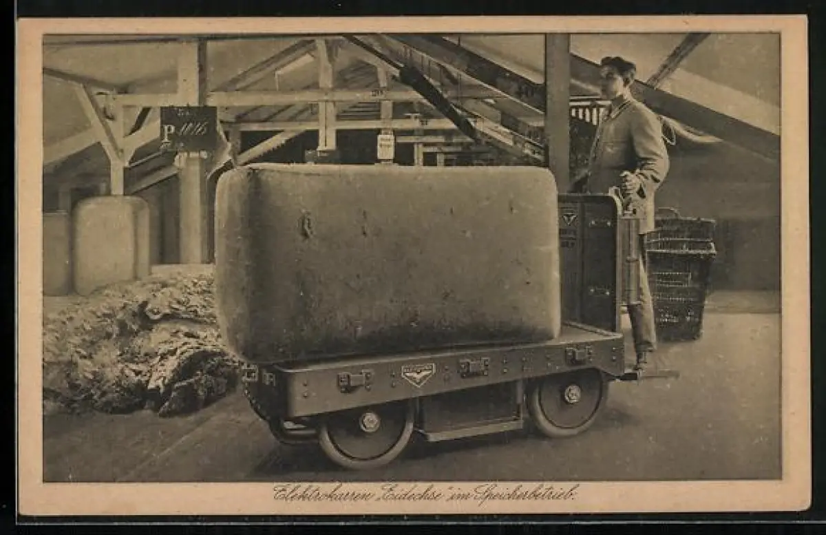 AK Mann auf einem Elektrokarren Eidechse im Speicherbetrieb