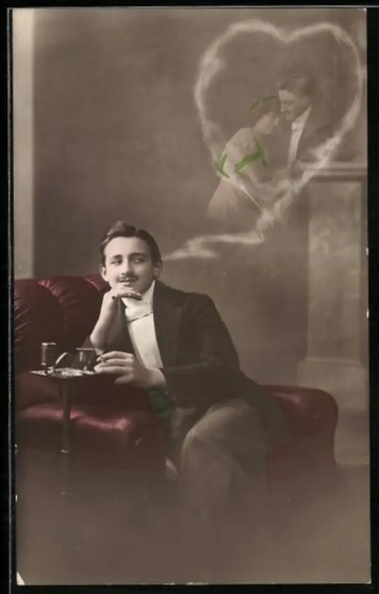 AK Mann auf einem Sessel denkt an seine Liebste